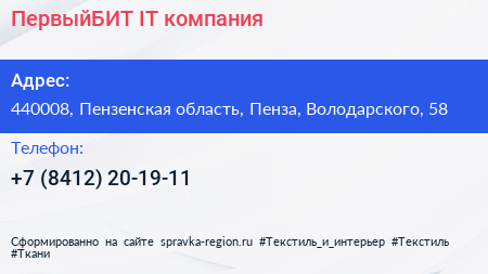 ПервыйБИТ, IT-компания по адресу 440008, Пензенская область, Пенза, Володарского, 58 в дальнейшем Организация, размещена в следующих категориях: