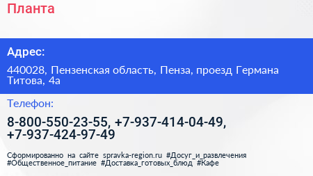 Планта по адресу 440028, Пензенская область, Пенза, проезд Германа Титова, 4а в дальнейшем Организация, размещена в следующих категориях: