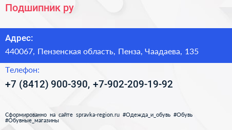 Подшипник.ру по адресу 440067, Пензенская область, Пенза, Чаадаева, 135 в дальнейшем Организация, размещена в следующих категориях: