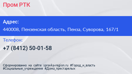 Пром РТК по адресу 440008, Пензенская область, Пенза, Суворова, 167/1 в дальнейшем Организация, размещена в следующих категориях: