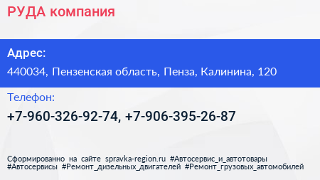 РУДА, компания по адресу 440034, Пензенская область, Пенза, Калинина, 120 в дальнейшем Организация, размещена в следующих категориях: