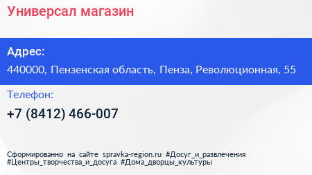 Универсал, магазин по адресу 440000, Пензенская область, Пенза, Революционная, 55 в дальнейшем Организация, размещена в следующих категориях: