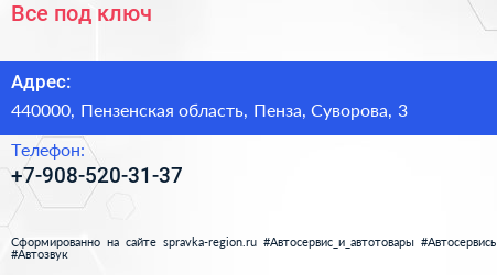 Все под ключ по адресу 440000, Пензенская область, Пенза, Суворова, 3 в дальнейшем Организация, размещена в следующих категориях: