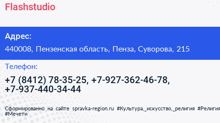 Flashstudio по адресу 440008, Пензенская область, Пенза, Суворова, 215 в дальнейшем Организация, размещена в следующих категориях: