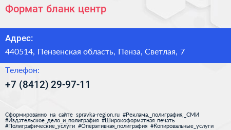 Формат, бланк-центр по адресу 440514, Пензенская область, Пенза, Светлая, 7 в дальнейшем Организация, размещена в следующих категориях: