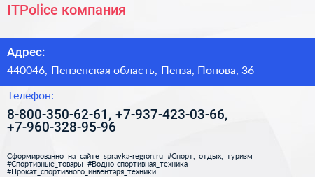 ITPolice, компания по адресу 440046, Пензенская область, Пенза, Попова, 36 в дальнейшем Организация, размещена в следующих категориях: