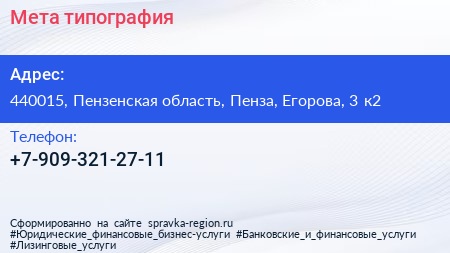 Мета, типография по адресу 440015, Пензенская область, Пенза, Егорова, 3 к2 в дальнейшем Организация, размещена в следующих категориях: