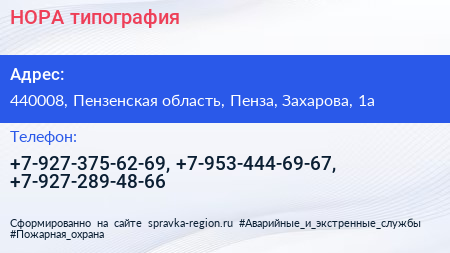 НОРА, типография по адресу 440008, Пензенская область, Пенза, Захарова, 1а в дальнейшем Организация, размещена в следующих категориях: