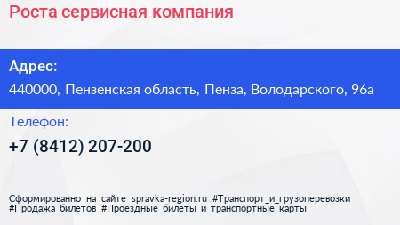 Роста, сервисная компания по адресу 440000, Пензенская область, Пенза, Володарского, 96а в дальнейшем Организация, размещена в следующих категориях: