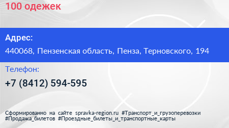 100 одежек по адресу 440068, Пензенская область, Пенза, Терновского, 194 в дальнейшем Организация, размещена в следующих категориях: