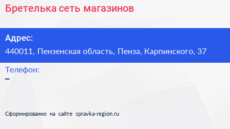 Бретелька, сеть магазинов по адресу 440011, Пензенская область, Пенза, Карпинского, 37 в дальнейшем Организация, размещена в следующих категориях: