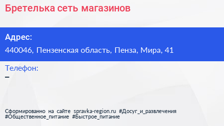 Бретелька, сеть магазинов по адресу 440046, Пензенская область, Пенза, Мира, 41 в дальнейшем Организация, размещена в следующих категориях: