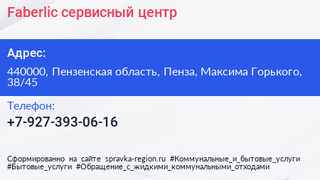 Faberlic, сервисный центр по адресу 440000, Пензенская область, Пенза, Максима Горького, 38/45 в дальнейшем Организация, размещена в следующих категориях: