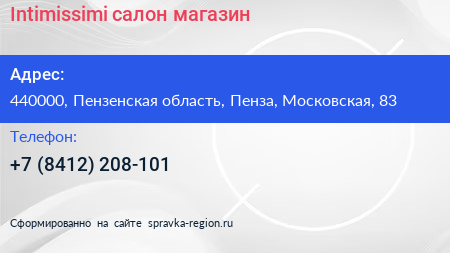 Intimissimi, салон-магазин по адресу 440000, Пензенская область, Пенза, Московская, 83 в дальнейшем Организация, размещена в следующих категориях: