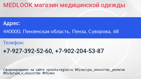MEDLOOK, магазин медицинской одежды по адресу 440000, Пензенская область, Пенза, Суворова, 68 в дальнейшем Организация, размещена в следующих категориях: