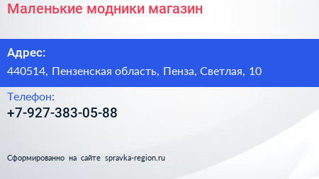 Маленькие модники, магазин по адресу 440514, Пензенская область, Пенза, Светлая, 10 в дальнейшем Организация, размещена в следующих категориях: