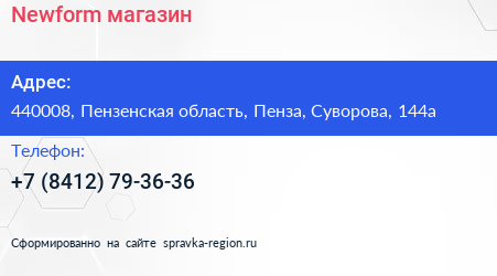 Newform, магазин по адресу 440008, Пензенская область, Пенза, Суворова, 144а в дальнейшем Организация, размещена в следующих категориях: