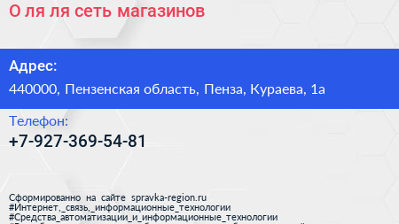 О`ля-ля, сеть магазинов по адресу 440000, Пензенская область, Пенза, Кураева, 1а в дальнейшем Организация, размещена в следующих категориях: