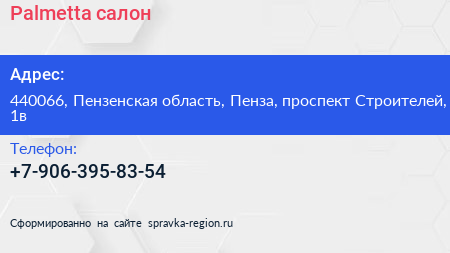 Palmetta, салон по адресу 440066, Пензенская область, Пенза, проспект Строителей, 1в в дальнейшем Организация, размещена в следующих категориях: