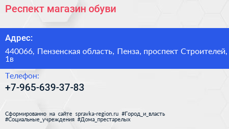 Респект, магазин обуви по адресу 440066, Пензенская область, Пенза, проспект Строителей, 1в в дальнейшем Организация, размещена в следующих категориях: