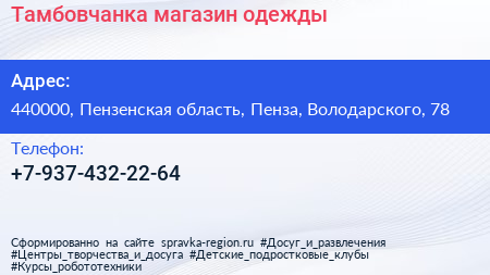 Тамбовчанка, магазин одежды по адресу 440000, Пензенская область, Пенза, Володарского, 78 в дальнейшем Организация, размещена в следующих категориях: