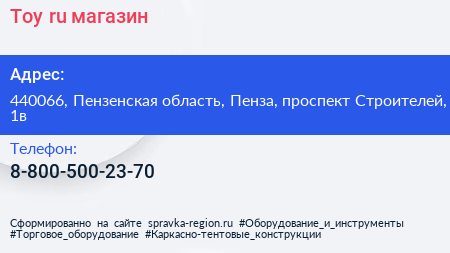 Toy.ru, магазин по адресу 440066, Пензенская область, Пенза, проспект Строителей, 1в в дальнейшем Организация, размещена в следующих категориях: