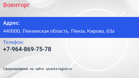 Военторг по адресу 440000, Пензенская область, Пенза, Кирова, 63а в дальнейшем Организация, размещена в следующих категориях: