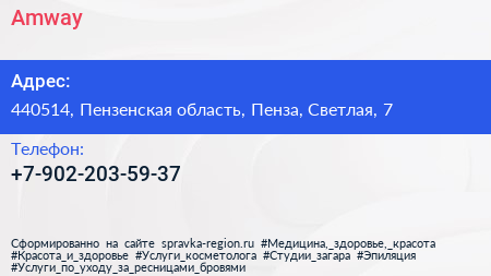 Amway по адресу 440514, Пензенская область, Пенза, Светлая, 7 в дальнейшем Организация, размещена в следующих категориях: