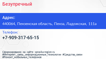 Безупречный по адресу 440064, Пензенская область, Пенза, Ладожская, 111а в дальнейшем Организация, размещена в следующих категориях: