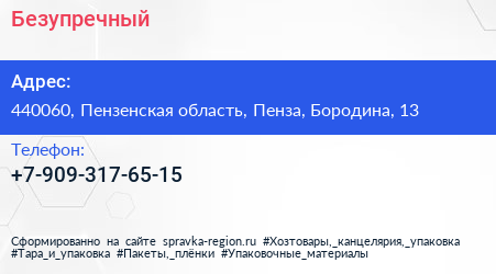 Безупречный по адресу 440060, Пензенская область, Пенза, Бородина, 13 в дальнейшем Организация, размещена в следующих категориях: