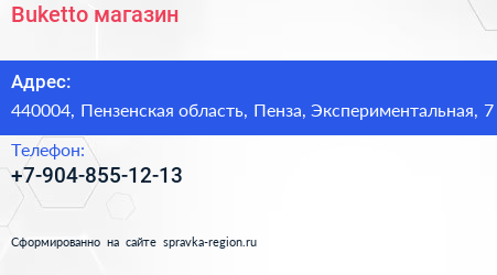 Buketto, магазин по адресу 440004, Пензенская область, Пенза, Экспериментальная, 7 в дальнейшем Организация, размещена в следующих категориях: