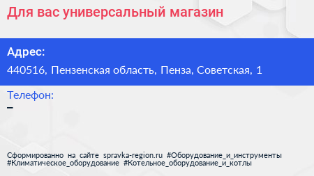 Для вас, универсальный магазин по адресу 440516, Пензенская область, Пенза, Советская, 1 в дальнейшем Организация, размещена в следующих категориях: