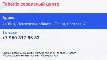 Faberlic, сервисный центр по адресу 440514, Пензенская область, Пенза, Светлая, 7 в дальнейшем Организация, размещена в следующих категориях: