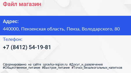 Файл, магазин по адресу 440000, Пензенская область, Пенза, Володарского, 80 в дальнейшем Организация, размещена в следующих категориях: