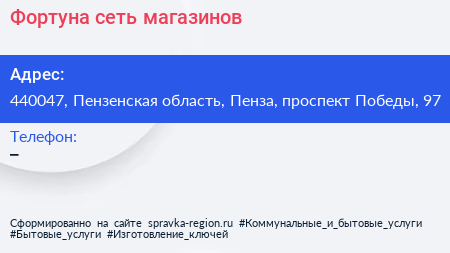 Фортуна, сеть магазинов по адресу 440047, Пензенская область, Пенза, проспект Победы, 97 в дальнейшем Организация, размещена в следующих категориях: