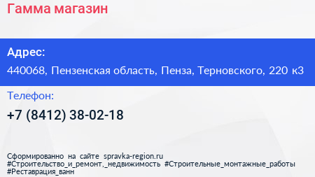 Гамма, магазин по адресу 440068, Пензенская область, Пенза, Терновского, 220 к3 в дальнейшем Организация, размещена в следующих категориях: