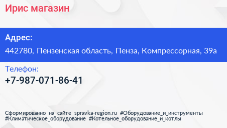 Ирис, магазин по адресу 442780, Пензенская область, Пенза, Компрессорная, 39а в дальнейшем Организация, размещена в следующих категориях: