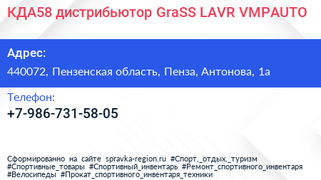 КДА58, дистрибьютор GraSS, LAVR, VMPAUTO по адресу 440072, Пензенская область, Пенза, Антонова, 1а в дальнейшем Организация, размещена в следующих категориях: