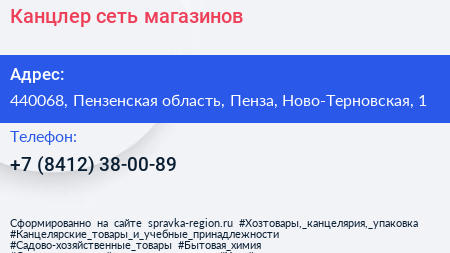 Канцлер, сеть магазинов по адресу 440068, Пензенская область, Пенза, Ново-Терновская, 1 в дальнейшем Организация, размещена в следующих категориях: