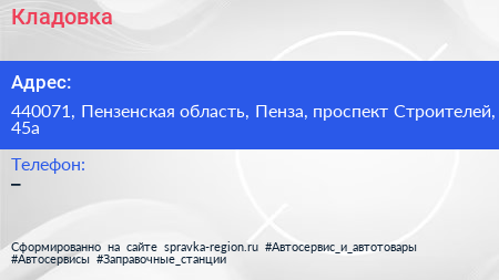 Адрес: Пензенская область, Пенза, проспект Строителей, 74а