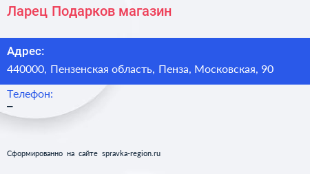 Ларец Подарков, магазин по адресу 440000, Пензенская область, Пенза, Московская, 90 в дальнейшем Организация, размещена в следующих категориях: