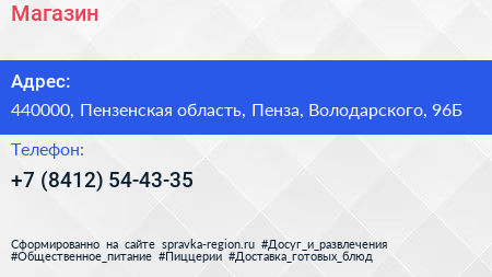 Магазин по адресу 440000, Пензенская область, Пенза, Володарского, 96Б в дальнейшем Организация, размещена в следующих категориях: