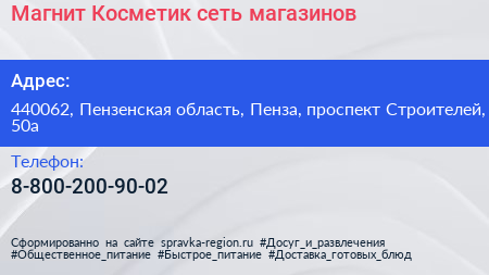 Магнит Косметик, сеть магазинов по адресу 440062, Пензенская область, Пенза, проспект Строителей, 50а в дальнейшем Организация, размещена в следующих категориях: