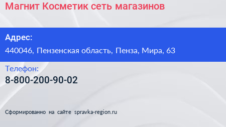 Магнит Косметик, сеть магазинов по адресу 440046, Пензенская область, Пенза, Мира, 63 в дальнейшем Организация, размещена в следующих категориях: