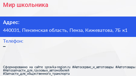 Мир школьника по адресу 440031, Пензенская область, Пенза, Кижеватова, 7Б к1 в дальнейшем Организация, размещена в следующих категориях: