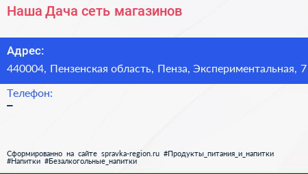 Наша Дача, сеть магазинов по адресу 440004, Пензенская область, Пенза, Экспериментальная, 7 в дальнейшем Организация, размещена в следующих категориях: