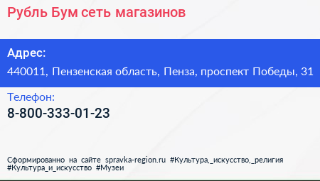 Рубль Бум, сеть магазинов по адресу 440011, Пензенская область, Пенза, проспект Победы, 31 в дальнейшем Организация, размещена в следующих категориях: