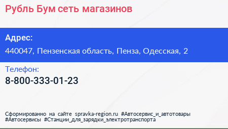 Рубль Бум, сеть магазинов по адресу 440047, Пензенская область, Пенза, Одесская, 2 в дальнейшем Организация, размещена в следующих категориях: