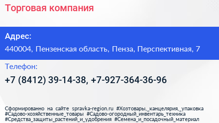 Торговая компания по адресу 440004, Пензенская область, Пенза, Перспективная, 7 в дальнейшем Организация, размещена в следующих категориях: