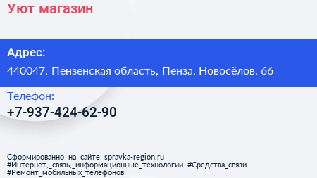 Уют, магазин по адресу 440047, Пензенская область, Пенза, Новосёлов, 66 в дальнейшем Организация, размещена в следующих категориях: